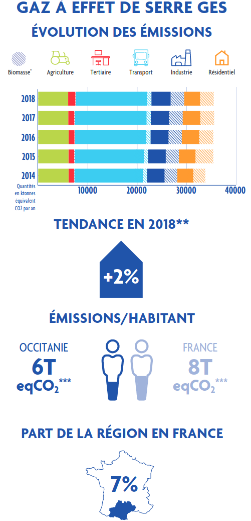 La production de gaz à effet de serre (GES) ne diminue pas dans la région. Nous sommes très loin d’une baisse continue jusqu’à 2030 qui est pourtant un objectif légal obligatoire.