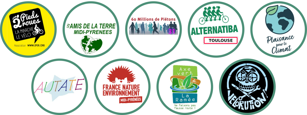 2 Pieds 2 Roues, Autate, Amis de la Terre Midi Pyrénées, France Nature Environnement Midi Pyrénées, 60 Millions de PiétonS 31, Axe vert de La Ramée, Alternatiba Toulouse, Vélorution Toulouse, Plaisance pour le Climat